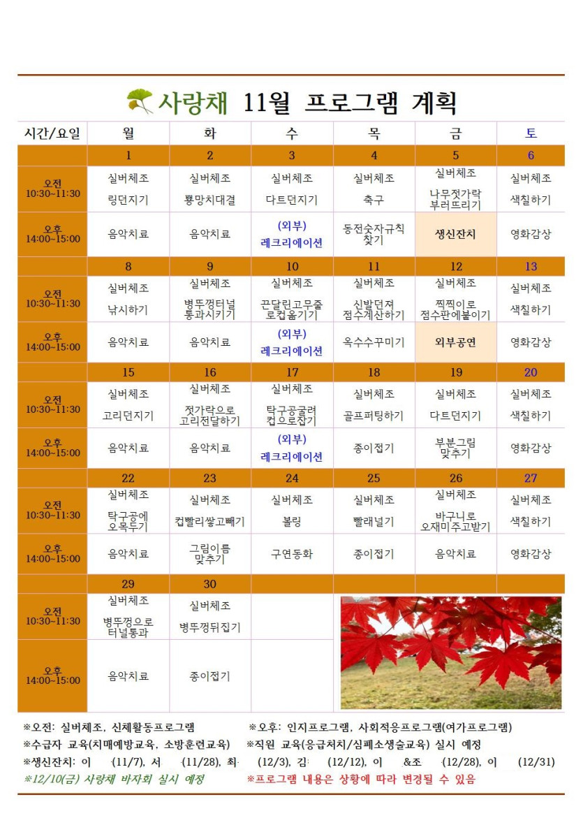 2021년 11월 식단표 및 프로그램계획표 페이지 정보 작성자 관리자 댓글 0건 조회 38회 작성일 2021-11-01 본문 2021년 11월 식단표 및 프로그램계획표 목록 목록 이전글2021년 12월 식단표 및 프로그램계획표 23.08.13 다음글2021년 10월 식단표 및 프로그램계획표 23.08.13 댓글 0 댓글목록 등록된 댓글이 없습니다.