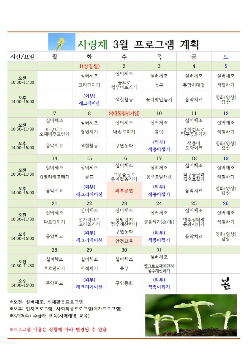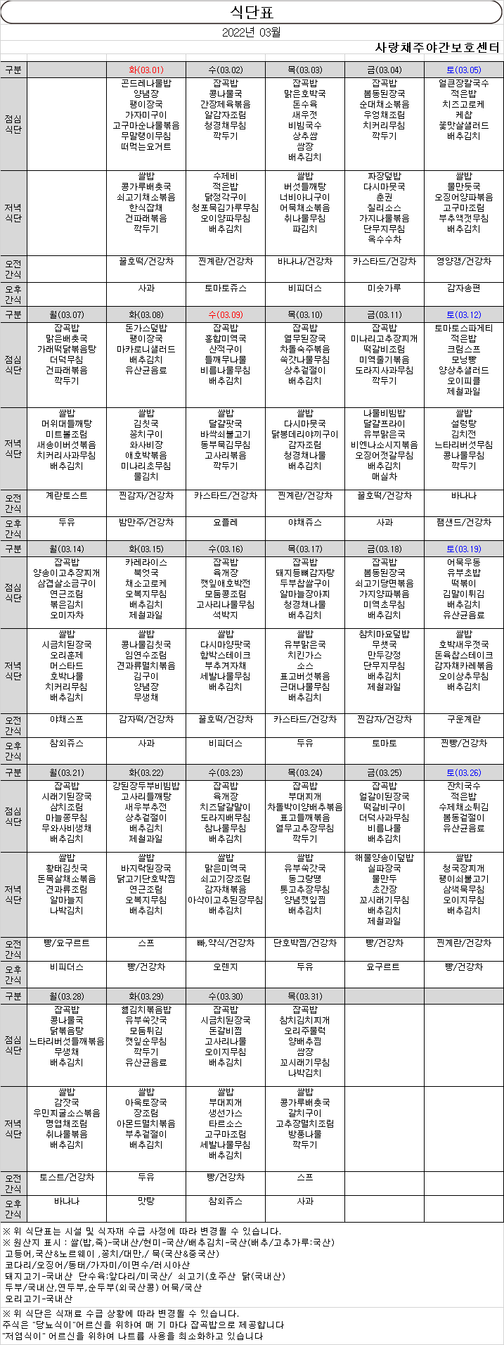 2022년 03월 식단표 및 프로그램계획표 페이지 정보 작성자 관리자 댓글 0건 조회 50회 작성일 2022-03-01 본문 2022년 03월 식단표 및 프로그램계획표 목록 목록 이전글2022년 04월 식단표 및 프로그램계획표 23.08.13 다음글2022년 02월 식단표 및 프로그램계획표 23.08.13 댓글 0 댓글목록 등록된 댓글이 없습니다.